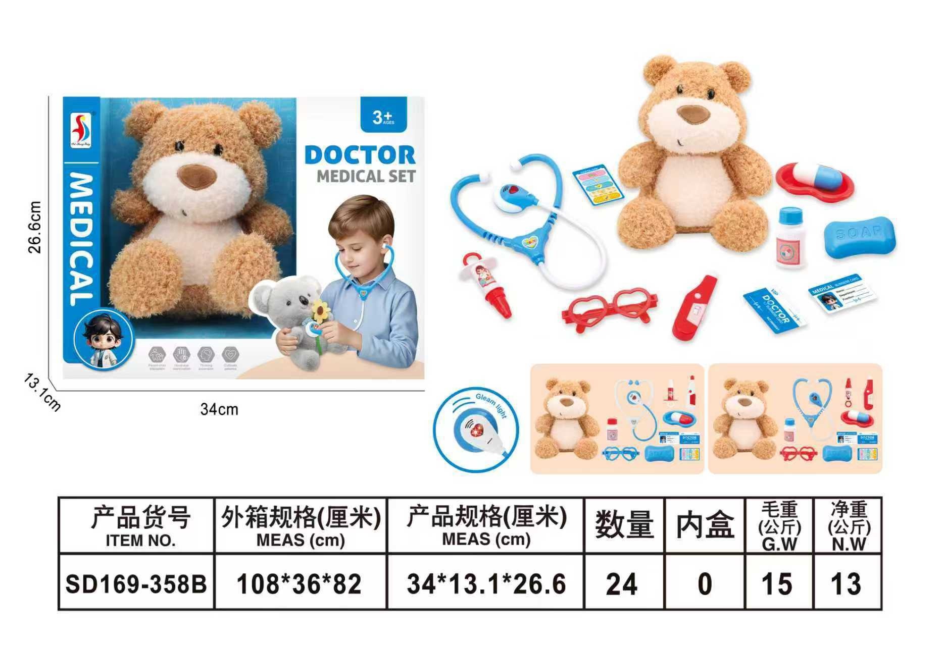 SD169-358B PLAYING HOUSE, MEDICAL EQUIPMENT, PLUSH TEDDY BEAR