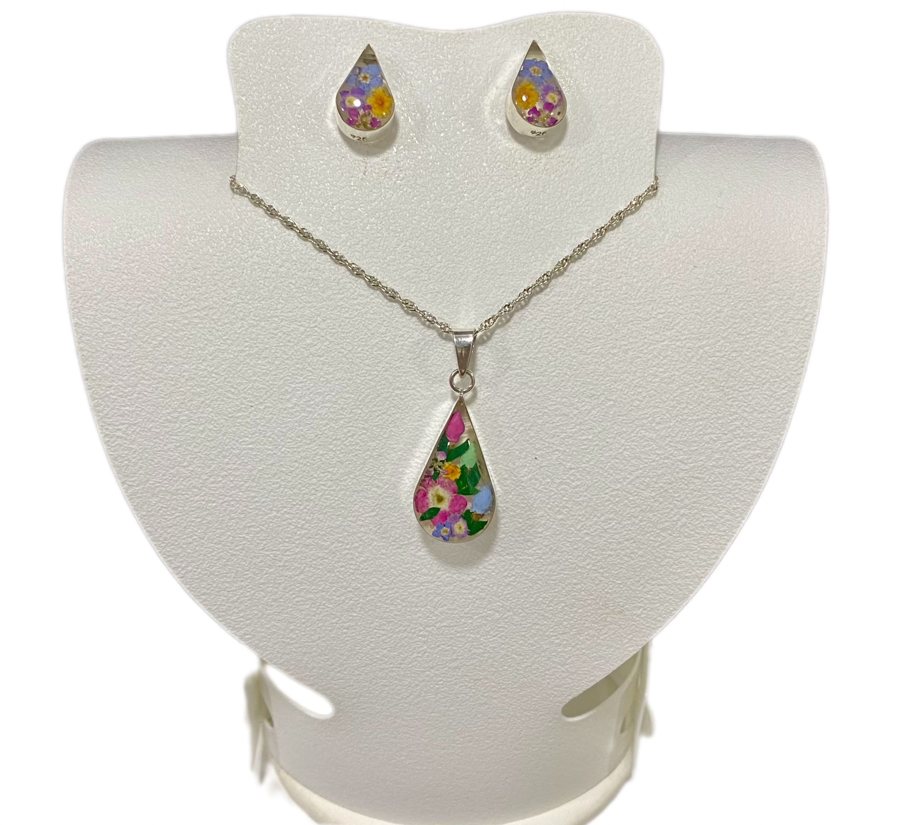 MEDIUM SILVER SET WITH ENCAPSULATED FLOWERS