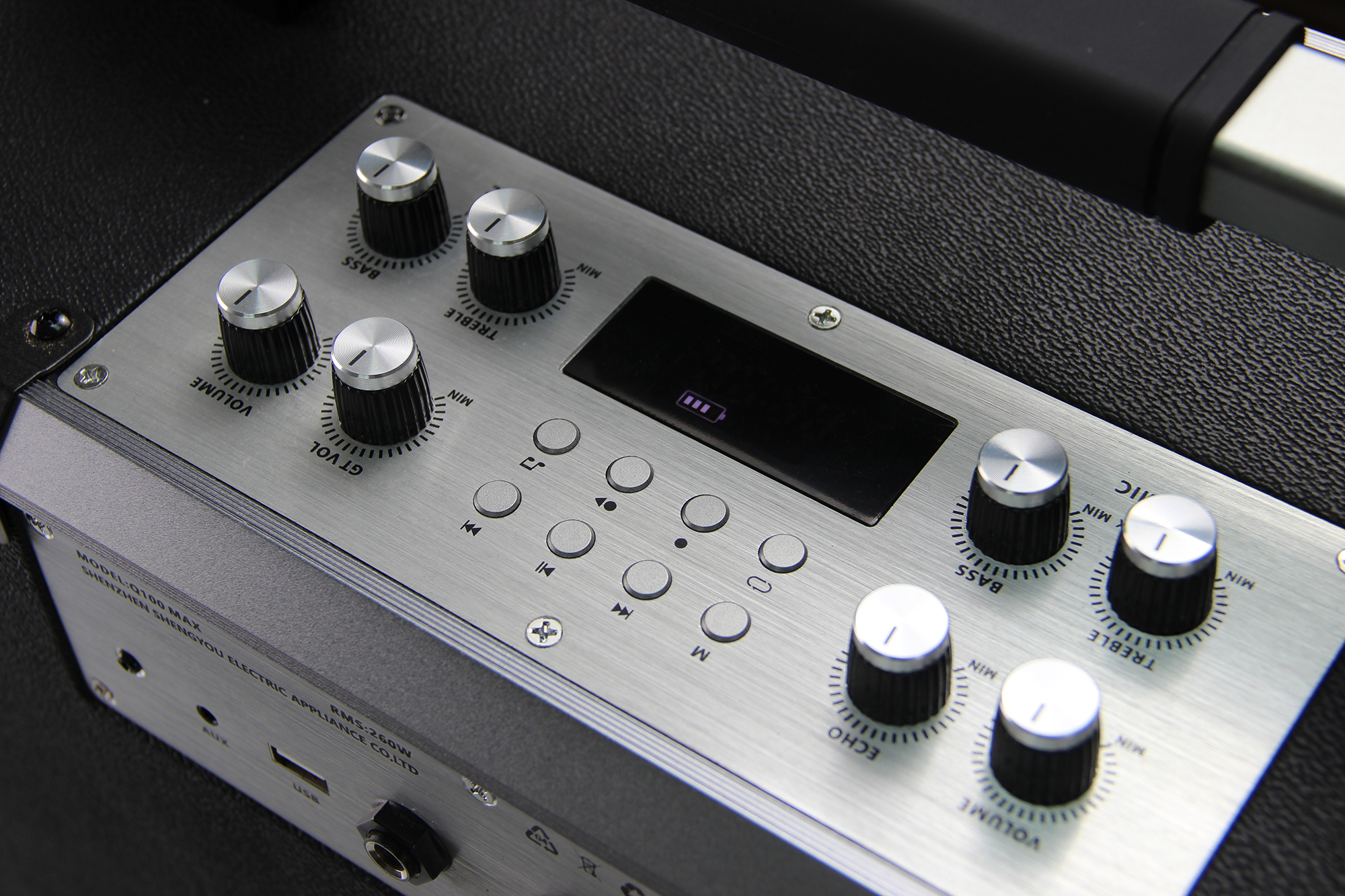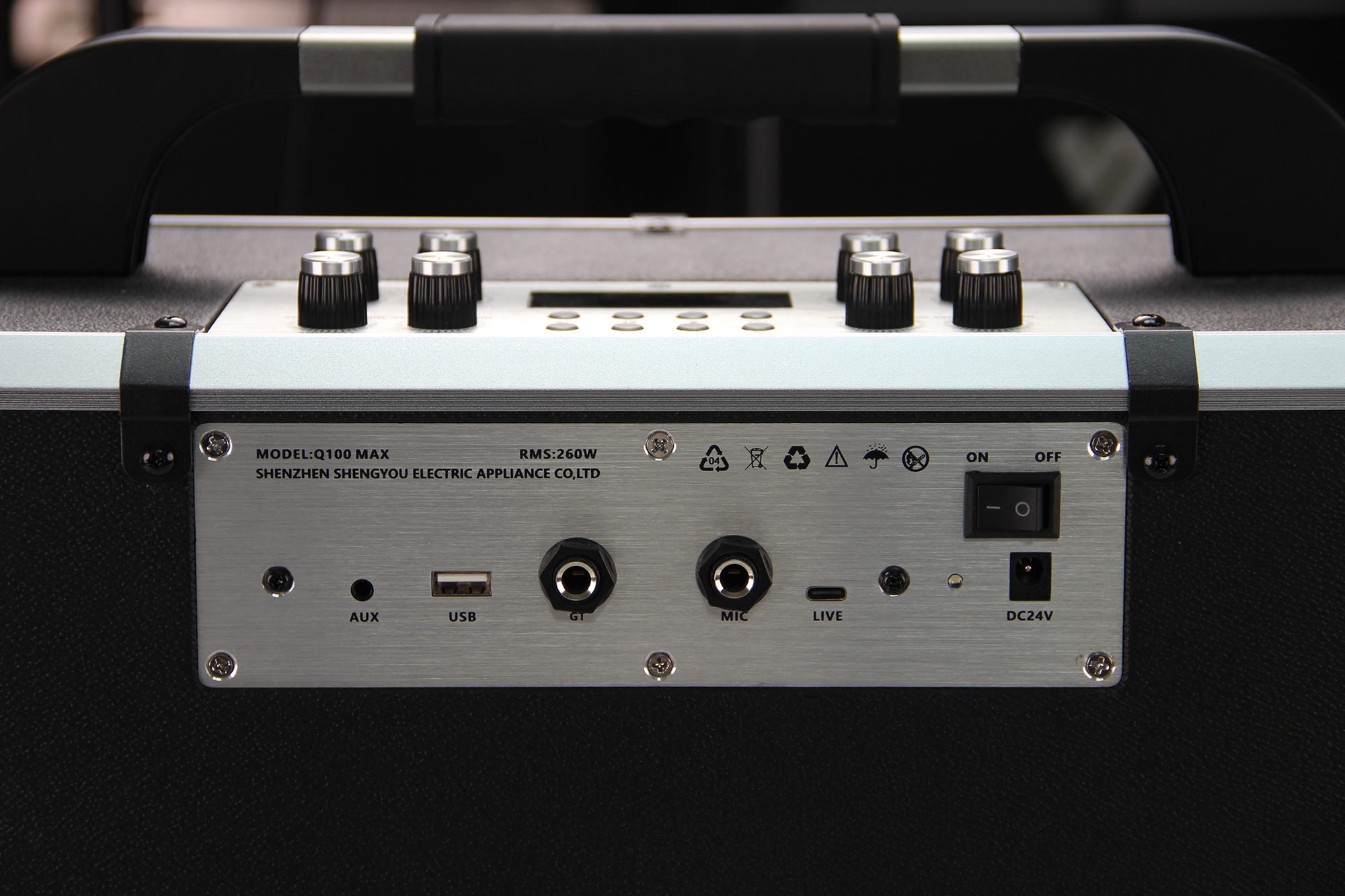 External interfaces: USB, AUX, DC charging, GT INPUT, headphones, MIC INPUT, OTG LIVE