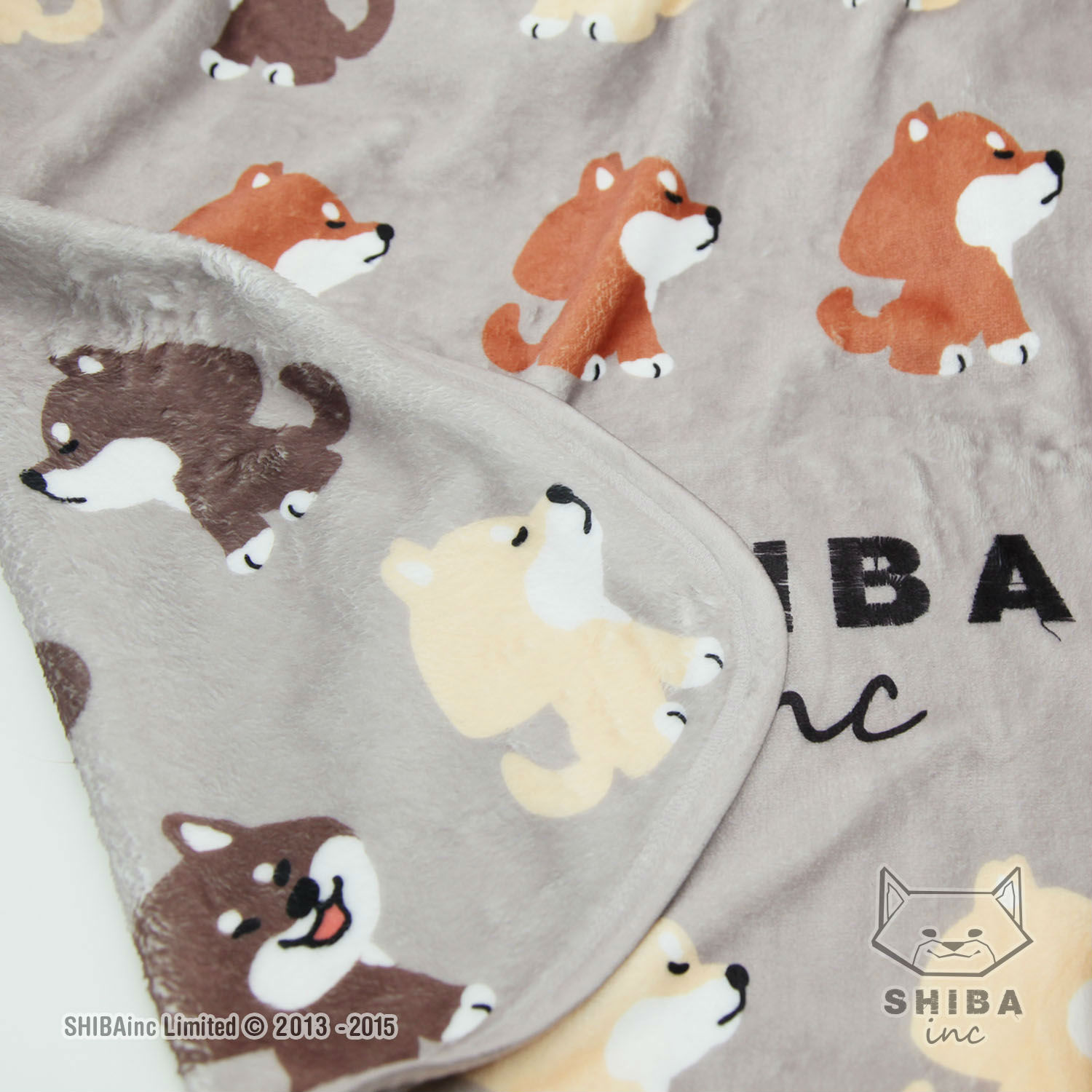Warm gray background color. A collection of Red, Black and cream Shiba in 1 blanket!
