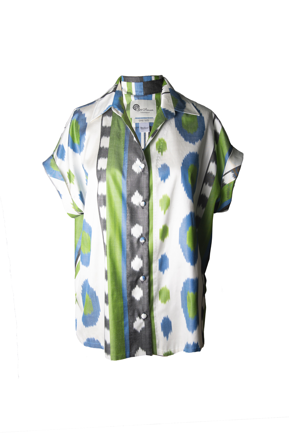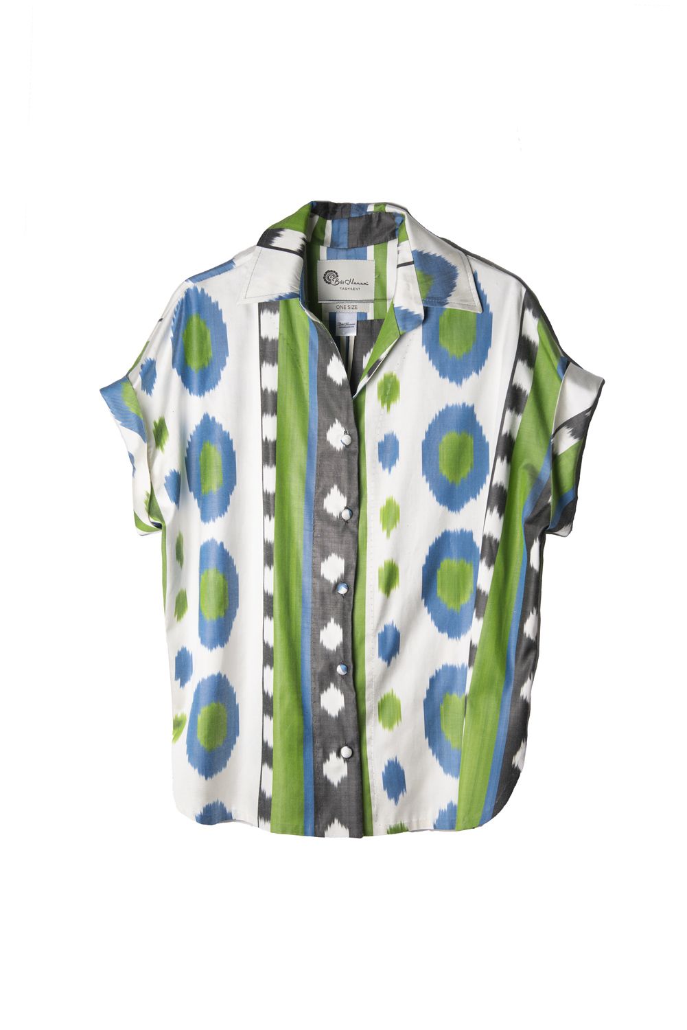This one-size button-down shirt is a graceful blend of heritage and ease. Cut from handwoven silk ikat, it brings together two distinct patterns — carefully paired to create a subtle harmony only true artisans can achieve.