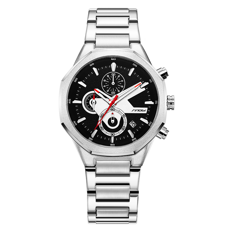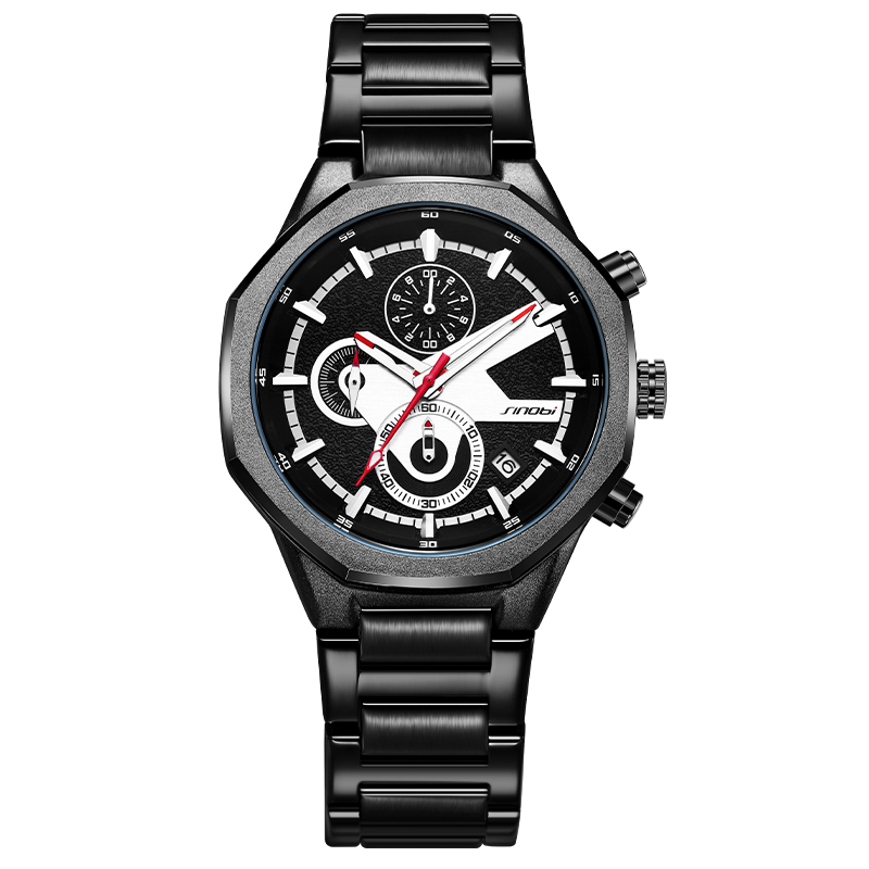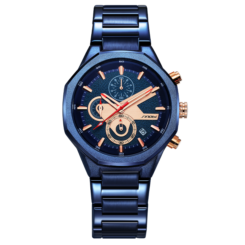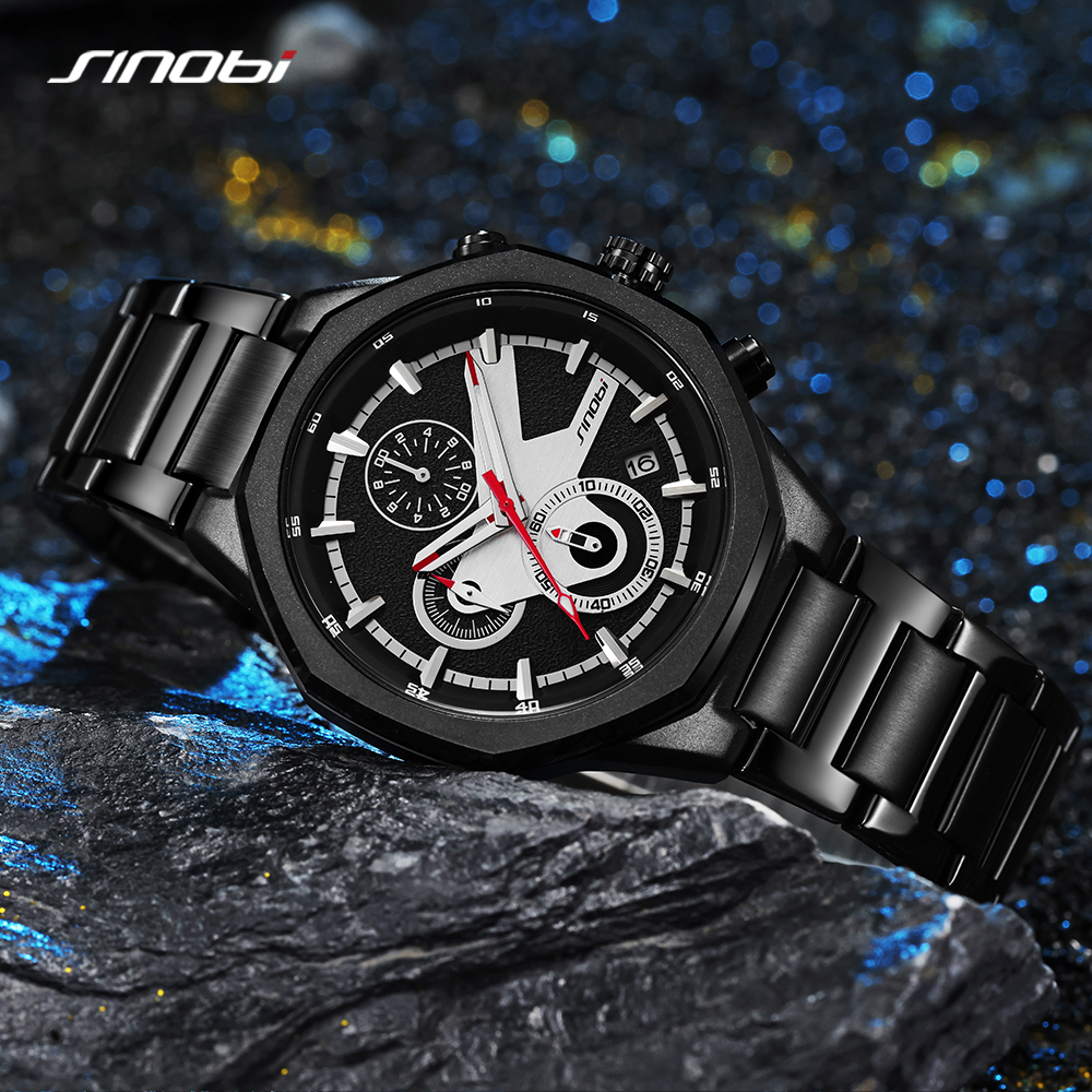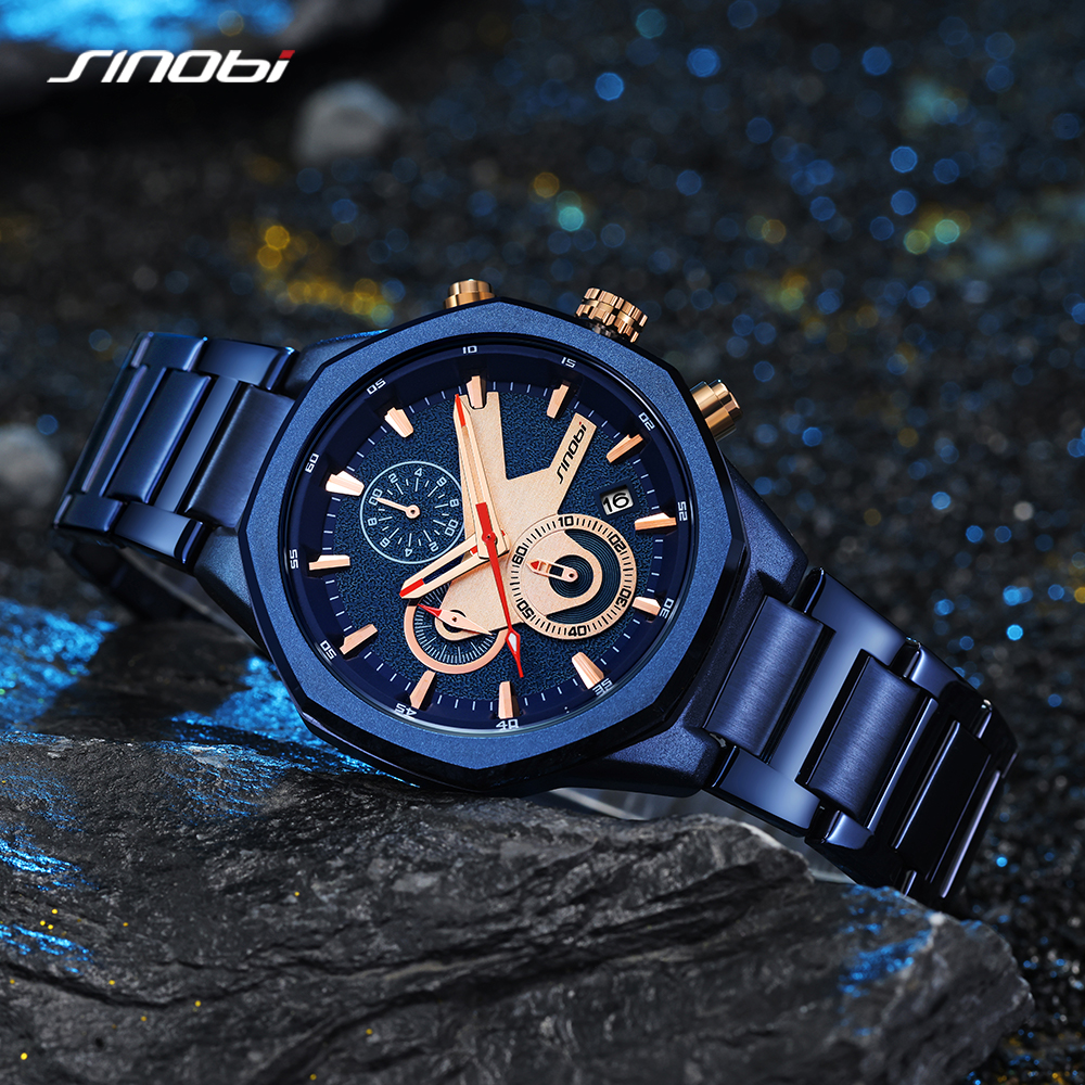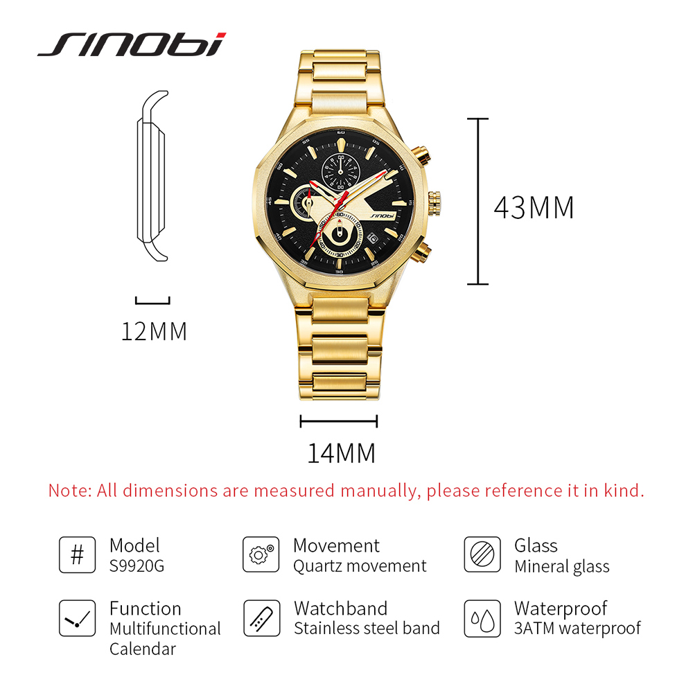 SINOBI Golden Men's Wristwatches Luxury Quartz Stainless Steel Multifunction Man Watch Irregular Chronograph Men Watches