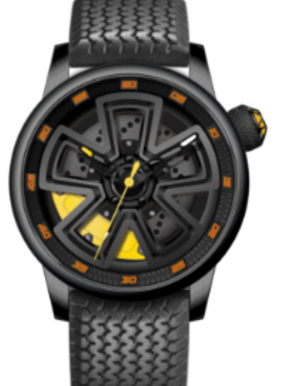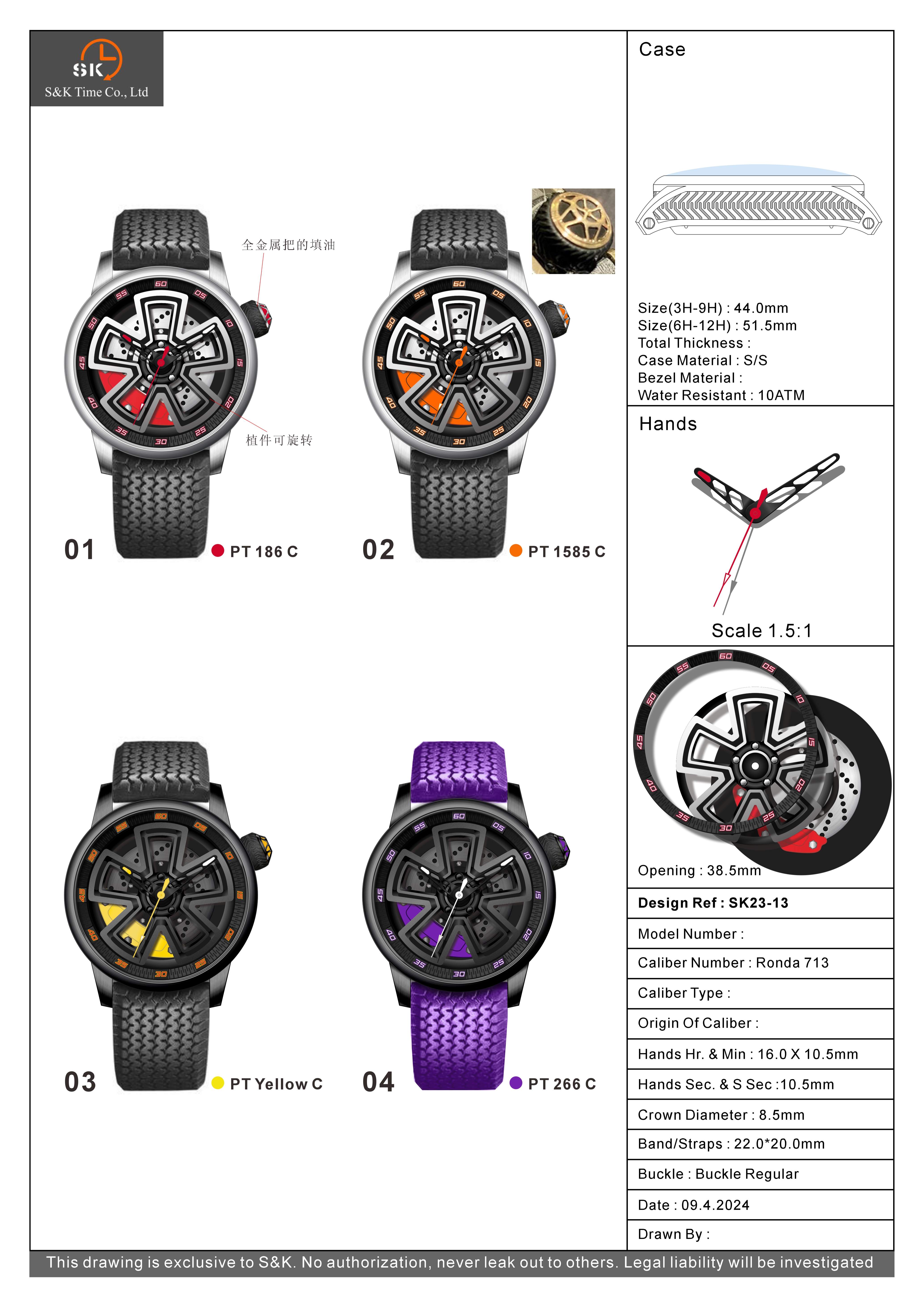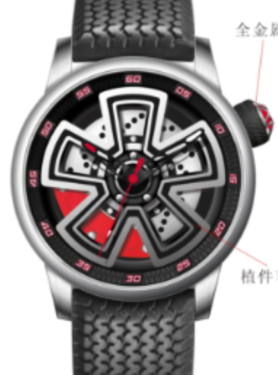 stainless steel /PVD case, 44mm, 51.50mm of lug-to-lug, sports style, Silicone strap with 22-20mm width, 10 ATM wate-resistance, Ronda 713 movement.