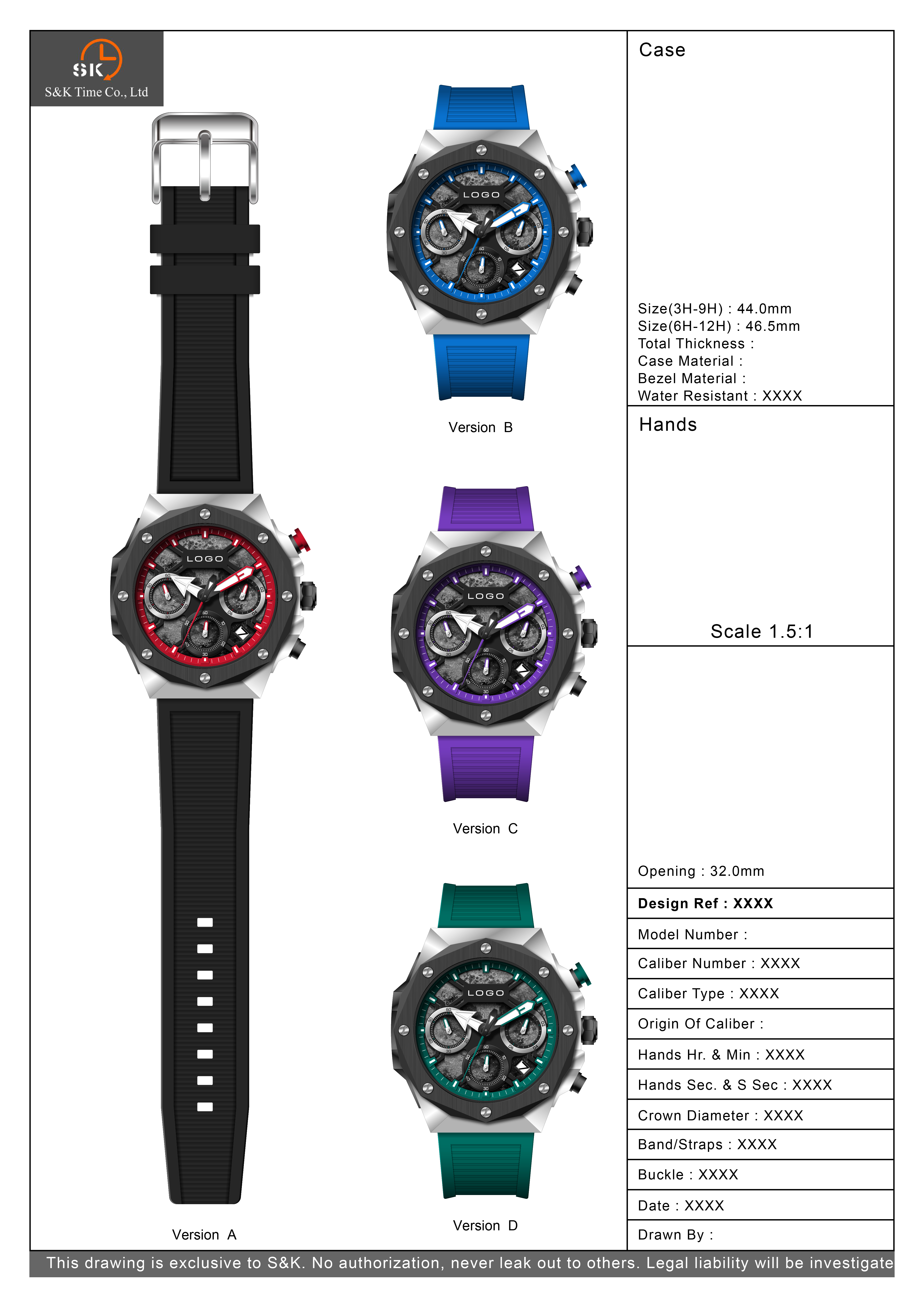 316L stainless steel case, silicon strap, Miyota 6S20 movement, 10ATM