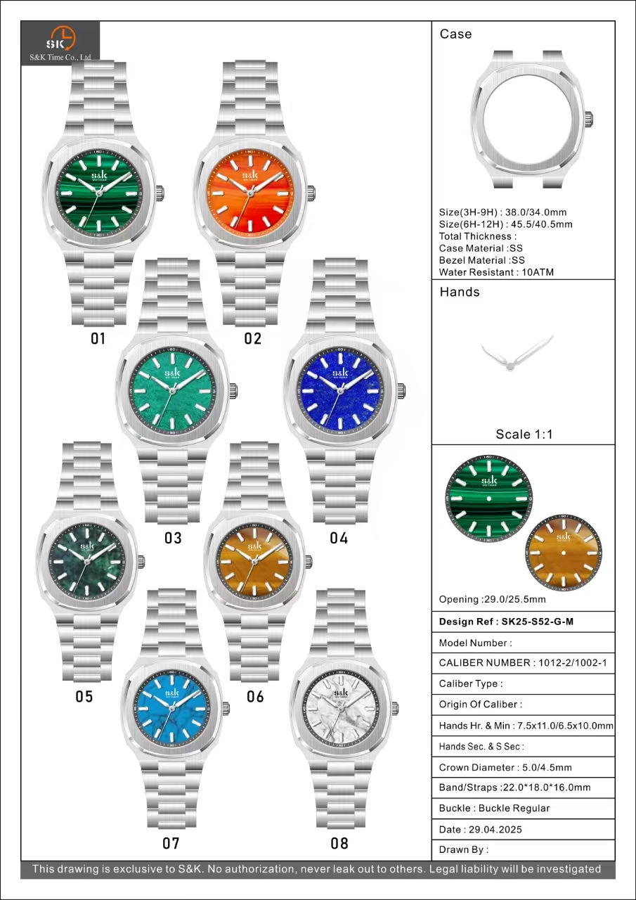 stainless steel case, 38-45.5mm/34-40.5mm, divers stone dial, Ronda 1012/1002 movement, 10ATM water-resistence, couple collection.
