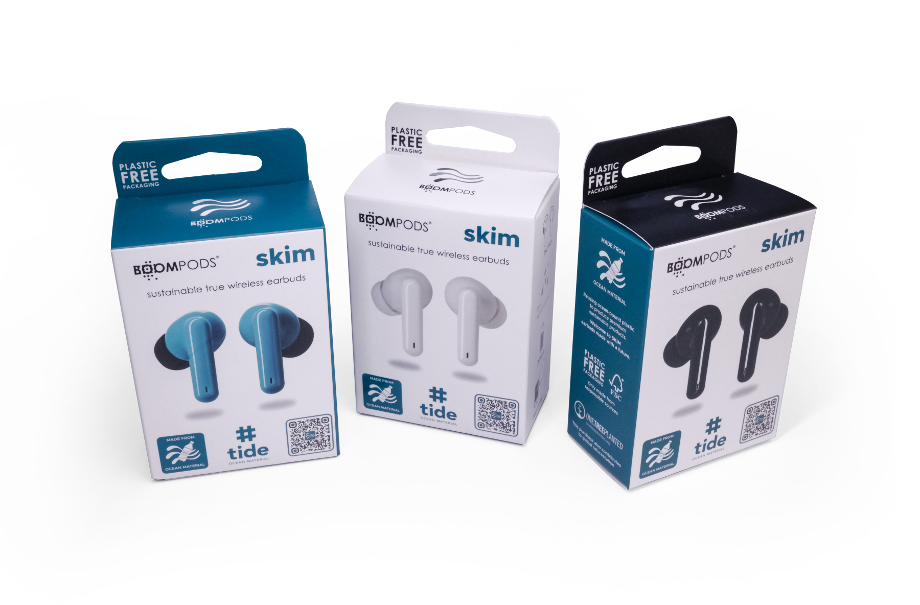 True wireless with great sound, a secure fit and made from ocean bound plastic. SKIM deliver true wireless freedom and are built to last. They are water-resistant, drop proof, have a solid connection and a long battery life. The short stork design keeps it subtle, but positions the mics closer to the mouth for clearer phone calls.