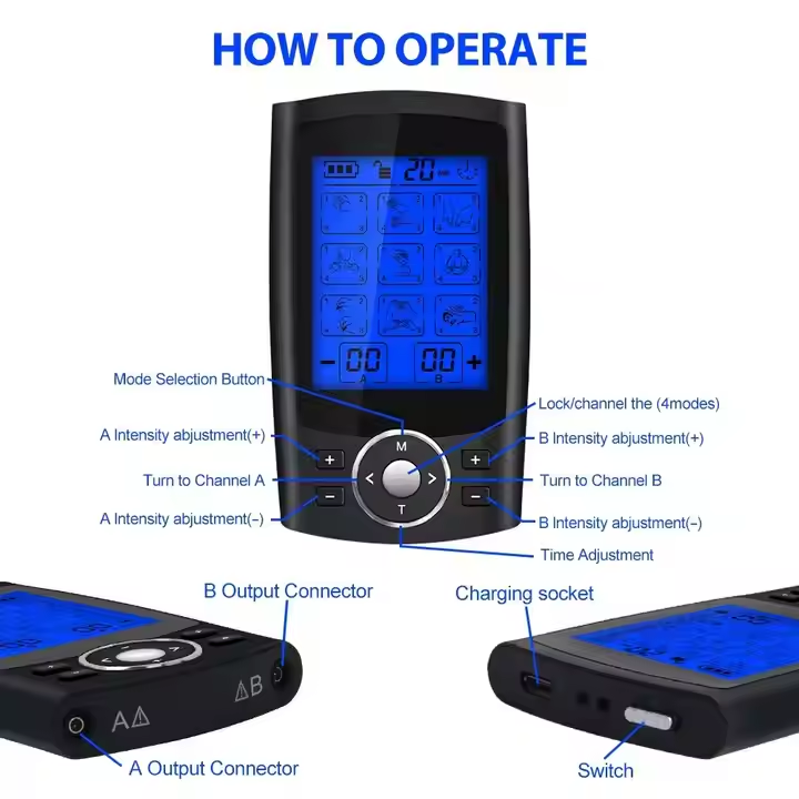 SKYFOREVER Electric Low Pulse Health Care Massage TENS EMS Muscle Stimulator 9 Modes Digital Therapy Tens Unit Electrodes
