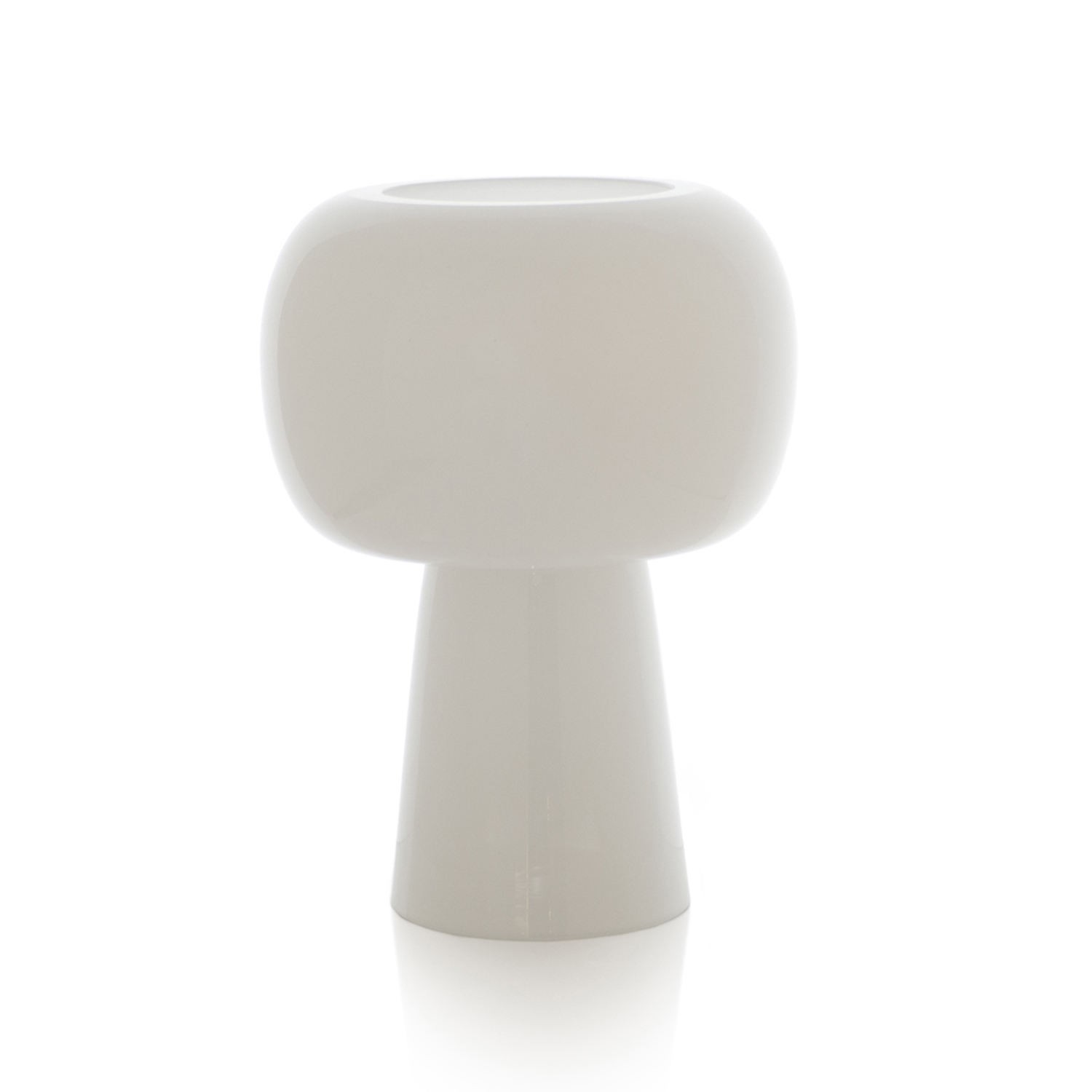 The striking form of the Basket Lamp comes to life when illuminated, showcasing a beautiful lattice pattern.