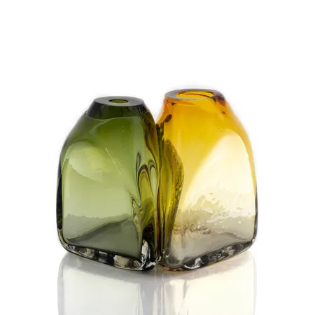 This duo takes on the gentle shape of the mold they were handblown into, fusing into one unique shape.