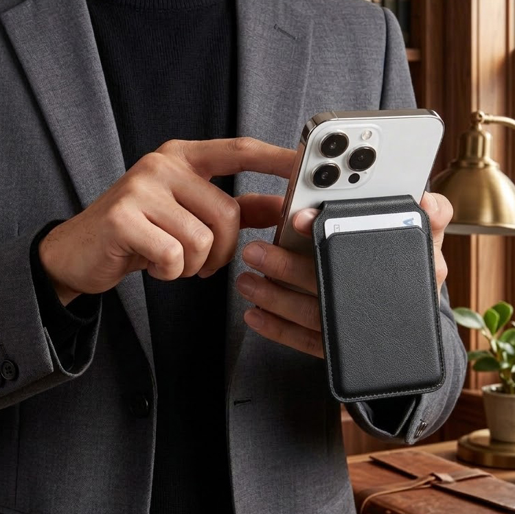 This magnetic wallet stand blends everyday convenience with modern style. Snap it onto the back of your iPhone using MagSafe-compatible tech, and you’re good to go — carry your cards, ID, or some cash without the bulk. It’s more than just a wallet — it also works as a sturdy phone stand, perfect for watching videos, browsing, or taking video calls hands-free in both portrait and landscape
