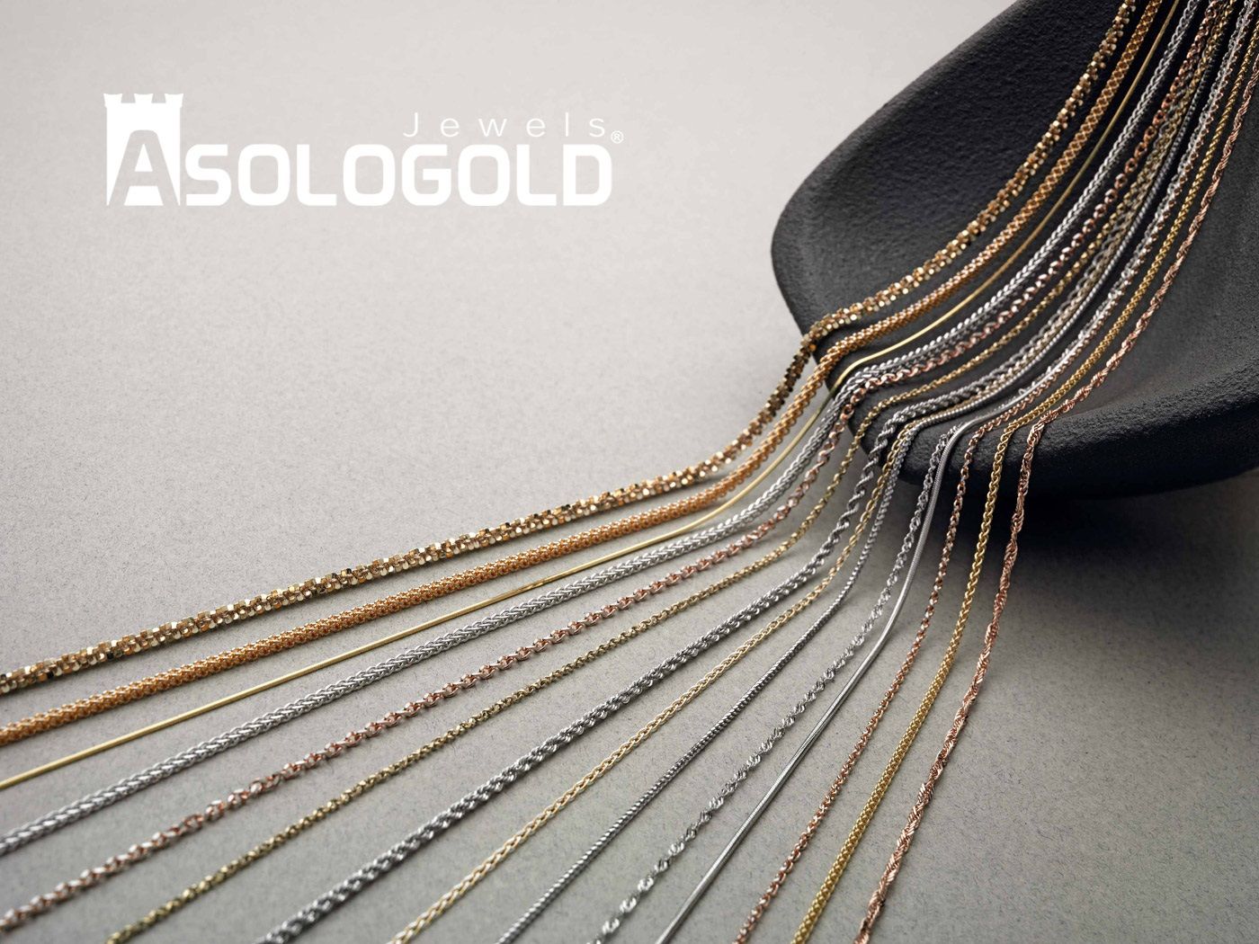 Asolo Gold is one of the Italian leaders in the production of high quality gold (8, 9, 10, 14 & 18kt) and platinum (950) chains.