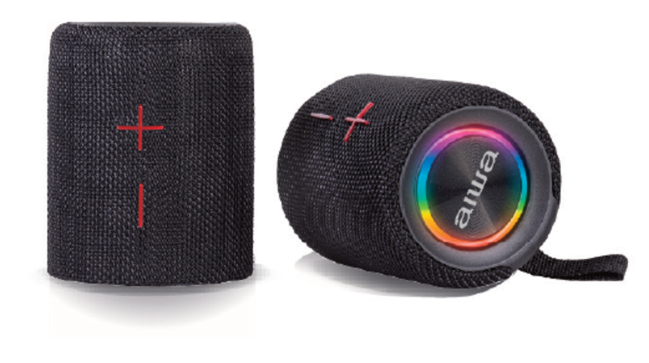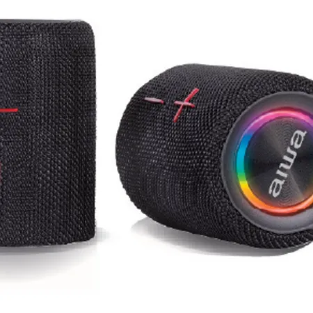 2x10W RMS detachable stereo speakers with Bluetooth 5.0, TWS stereo, and multi-input options including Micro-SD, AUX, and MP3. Features RGB lighting, IPX5 waterproofing, wide compatibility, 20Hz–20kHz response, and 2000mAh rechargeable battery.