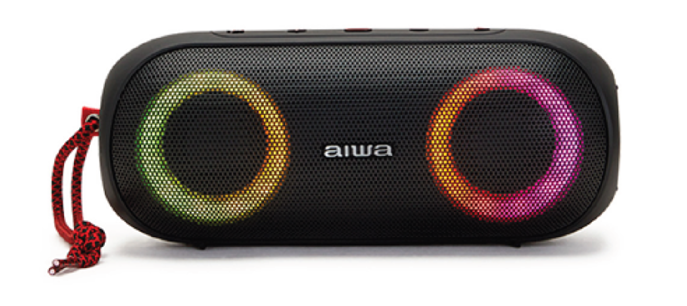 Rugged and durable Bluetooth V5.0 speaker with 20W RMS audio, DSP for superior sound, and TWS capability for stereo pairing. Features include HyperBASS drivers, RGB lighting, IPX6 waterproofing, hands-free mic, Micro-SD slot, AUX input, USB-C charging, and 8.5-hour playback.