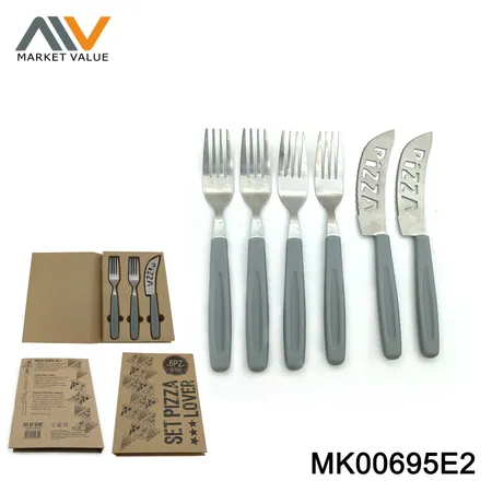 This elegant set includes 4 forks and 2 pizza knives, each featuring a stylish "pizza" cut-out design on the blade, adding a unique decorative touch. Perfect for gifting or for elevating your own pizza party setup.