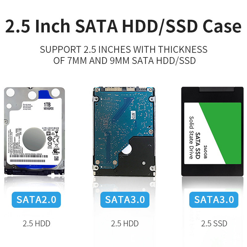 Support 2.5inch 9.5mm,7mm SATA HDD/SSD Power & Data accessing indicators