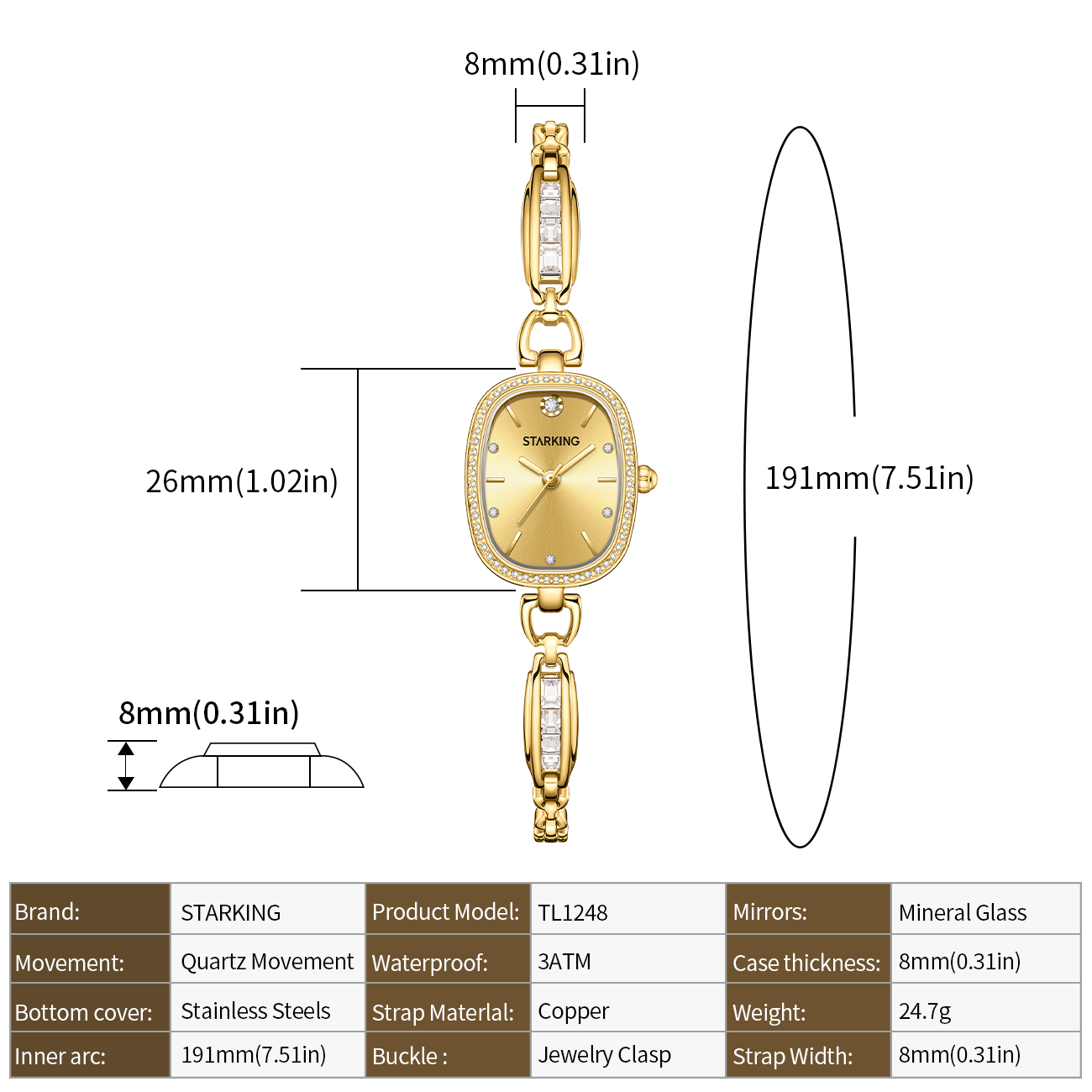 • Strong Wearing Adaptability: The strap length reaches 191mm and is adjustable in length. Combined with the 8mm strap width, it can meet the wearing needs of women with different wrist sizes, ensuring a comfortable and snug fit.