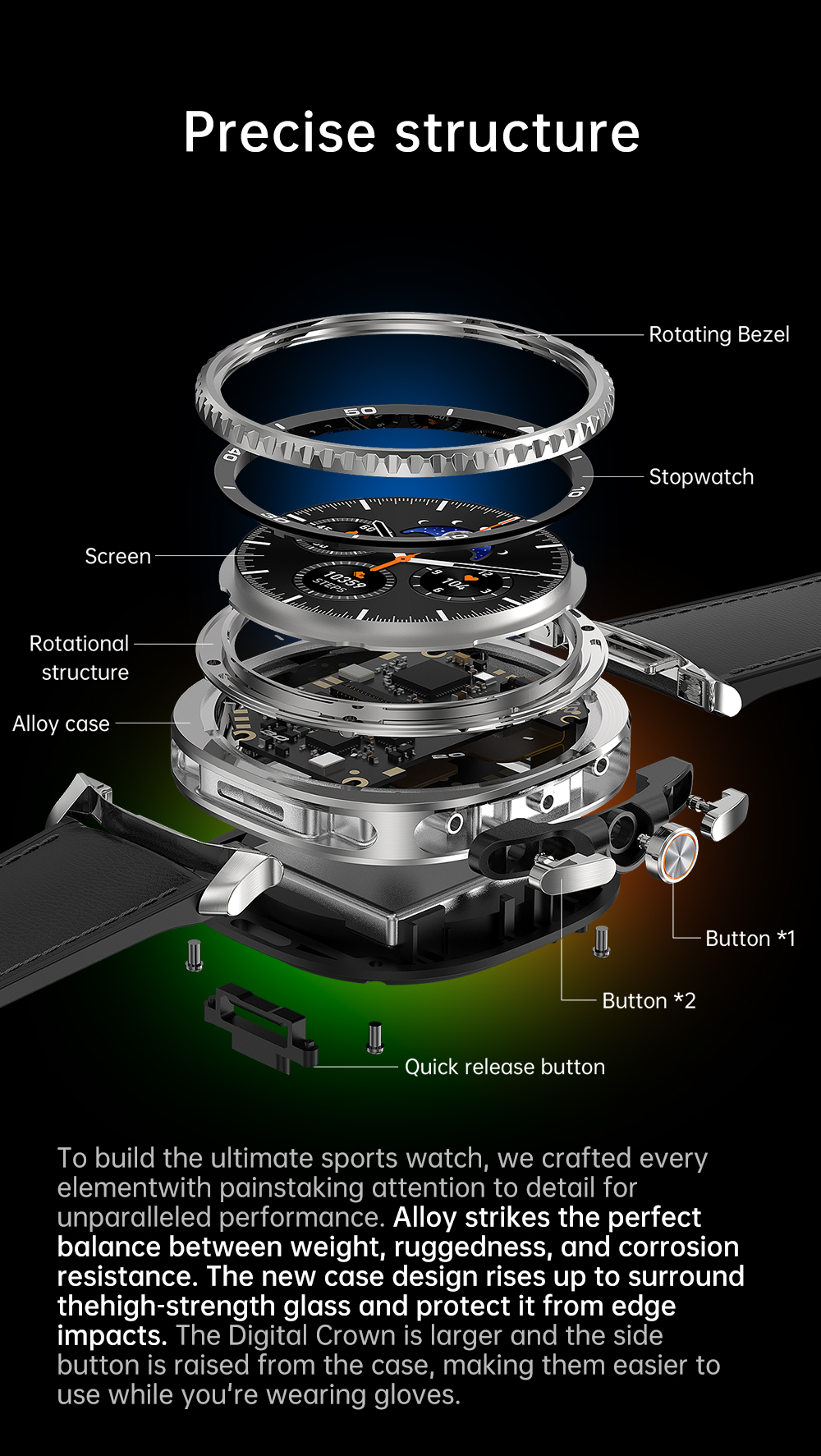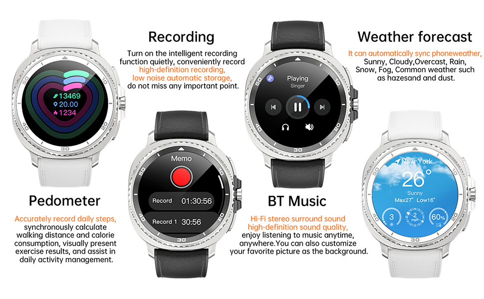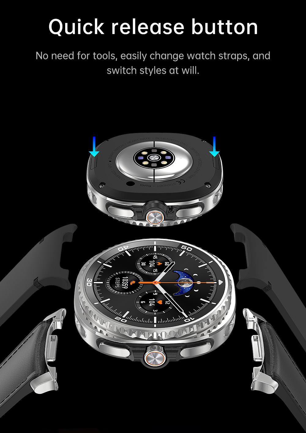 Others features: 500+ free watch faces, dynamic island, one-click pairing, main menu background image push, music interface background image push, motion-sensing games, GPS sport tracking, game downloads, background management, app skin switching, workout trajectory video, family sharing with location and health information, SOS emergency alert, album, video watch face push. wireless charging, Bluetooth calling, voice assistant, NFC access, independent clock, always-on display, bedside lamp, female physiological cycle tracking, blood sugar/ body temperature/ heart rate/ ECG/ blood pressure/ blood oxygen and sleep tracking, pedometer, Bluetooth photo capture, Bluetooth music, social networking, QR code sharing, calculator, contacts, weather, timer, alarm, passcode lock, flashlight.