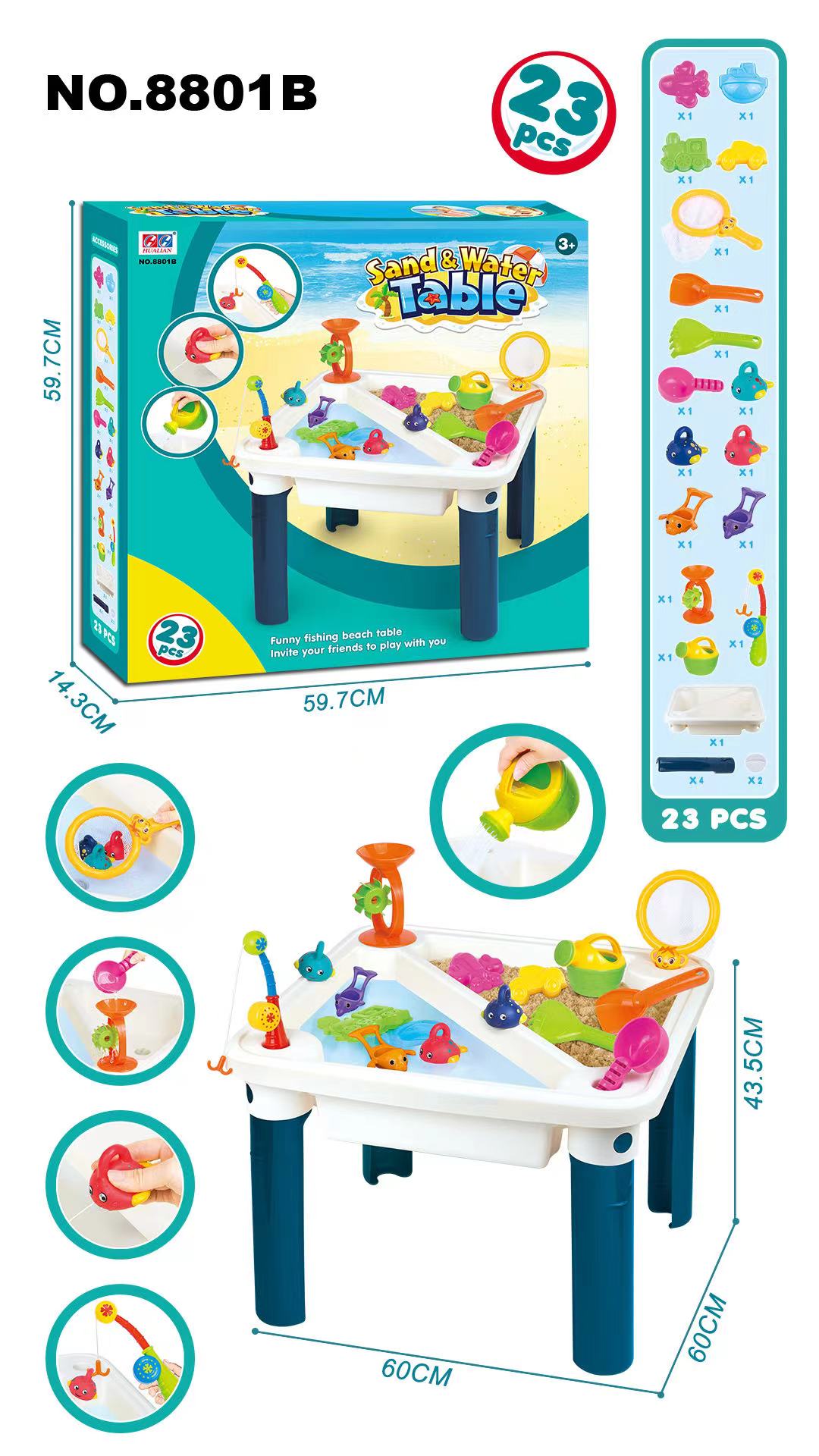 The big table can hold many small sand and water toys!One side for sand,one side for water.Children can fishing,making sand mold,do what their like.