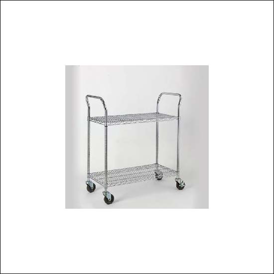 • A stainless steel hand cart with two layers for storage.