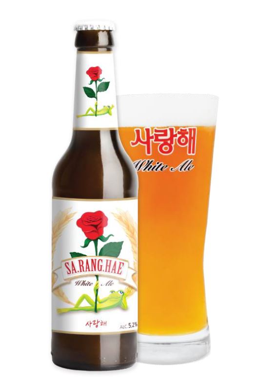• ABV : 5.2% - Volume : 330ml 'Sa.Rang.Hae White Ale' is wheat beer made by Germany. 'Sa.Rang.Hae' means 'I love you' in Korean language. Sa.Rang.Hae White Ale, with its fine-pored white foam, smells of cloves and impresses people with its refreshing banana flavor. It's generally a crisp, drinkable brew with a moderate alcohol content. Noted as being sweet and fruity with notes of banana and clove, it pairs perfectly with any dish!