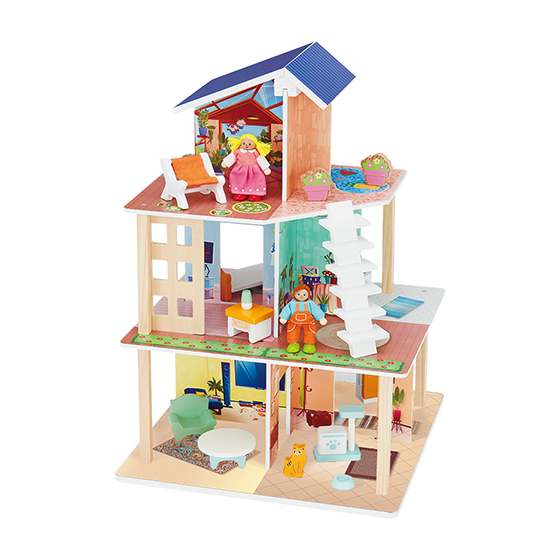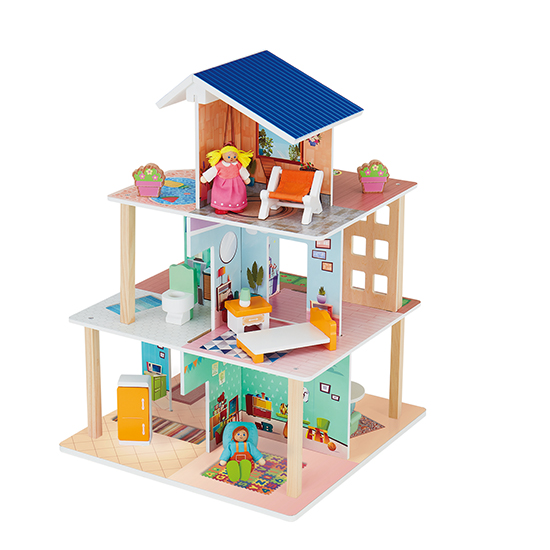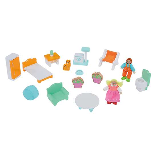 • this 4 ways play house could offer over 2 kids to play together, includes 2 figure and 14 pc furniture.