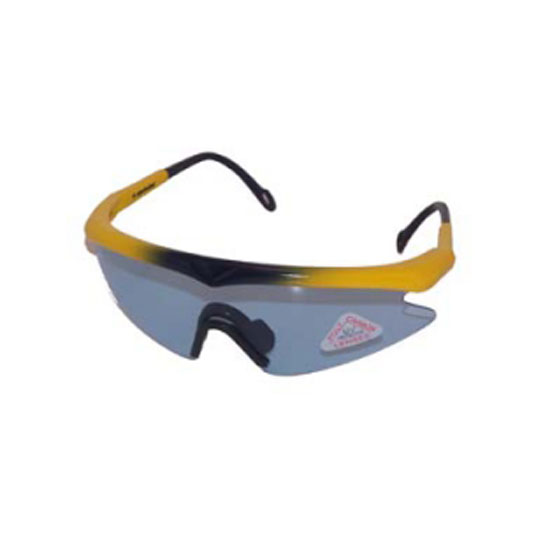 Displayed are safety glasses coming in yellow and black fading colors. The safety glasses prevent particles, chemicals, and other harmful substances from getting into your eyes. They are suitable for a wide variety of outdoor workplaces.