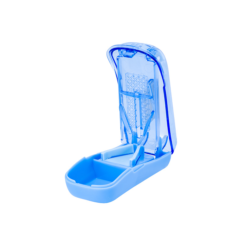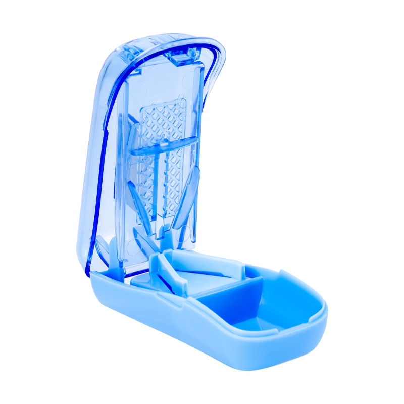 Small and compact device designed to help you cut pills or tablets into smaller pieces for easier swallowing. It is made of high-quality plastic material and features a sharp stainless steel blade that can easily cut through pills of various sizes and shapes. Its compact size and lightweight design make it easy to carry in your purse, pocket, or travel bag.