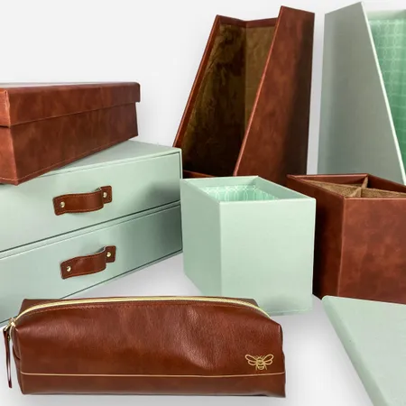 THE SAGE FASHION STATIONERY AND DESK ACCESSORY RANGE is designed with a muted retro vibe, it range features stylish faux vintage vegan leather/leatherette and quaint sage tones with gold elements.