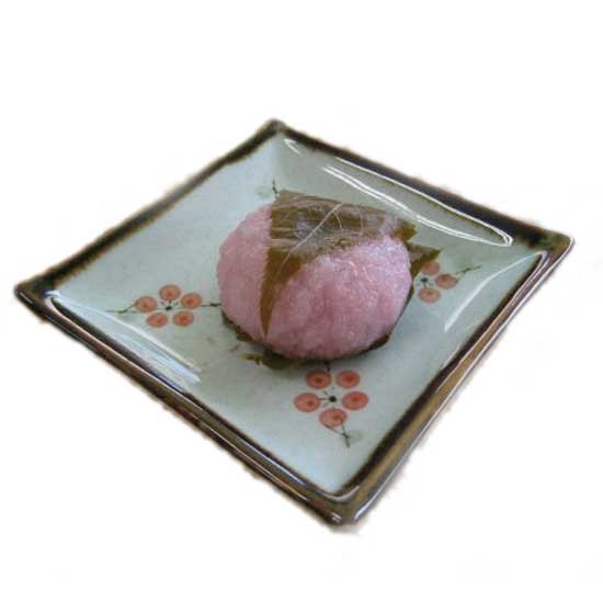 Presented here is a mochi that is stuffed with sweetened bean paste. It is well wrapped with a preserved cherry leaf. This featured mochi is a nice snack for both children and adults.