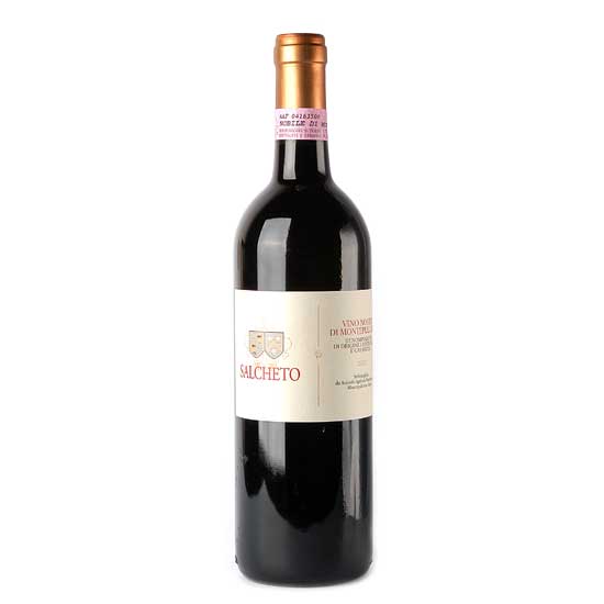 Displayed is a bottle of Italian red wine. 2010 was an incredible vintage. After a difficult and extended winter and a spring with complicated health pressures on the plant, the evolution was a positive recovery following a subpar blossoming. However, a fresh and cloudy September seemed to have compromised the phenolic concentration, but finished with a magnificent outburst in the last days of the month, expressing power and elegance in this Vino Nobile.