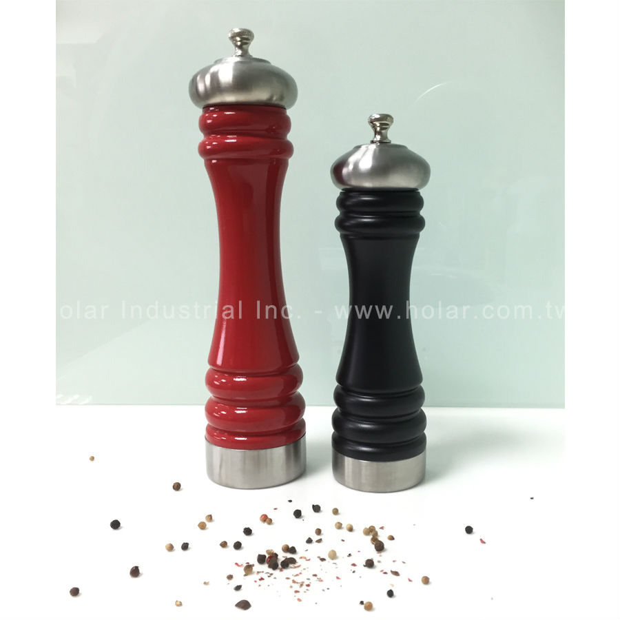 High-quality Holar ALSS salt and pepper grinder set with black/piano red is one of the perfect choices of Holar salt and pepper wood mill series. Features with rubber wood and type 304 stainless steel (top and bottom), it is designed with premium balance and weight. Fully adjustable from fine to coarse grind.
