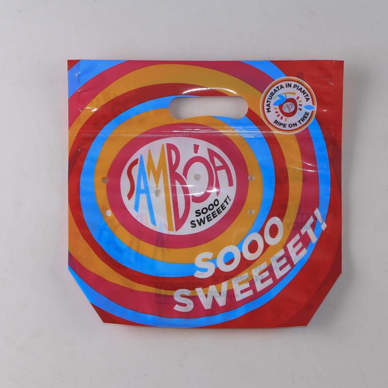 This food packaging bag is rendered in bright colors to stand out on shelves. It is made of plastic materials for a durable construction and a long service life. Reliable and practical, this food packaging bag is perfect for a wide variety of retail purposes.