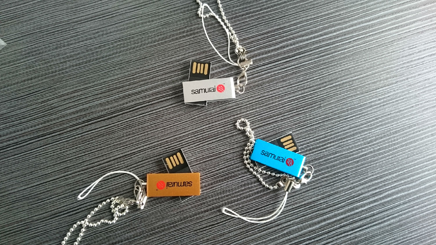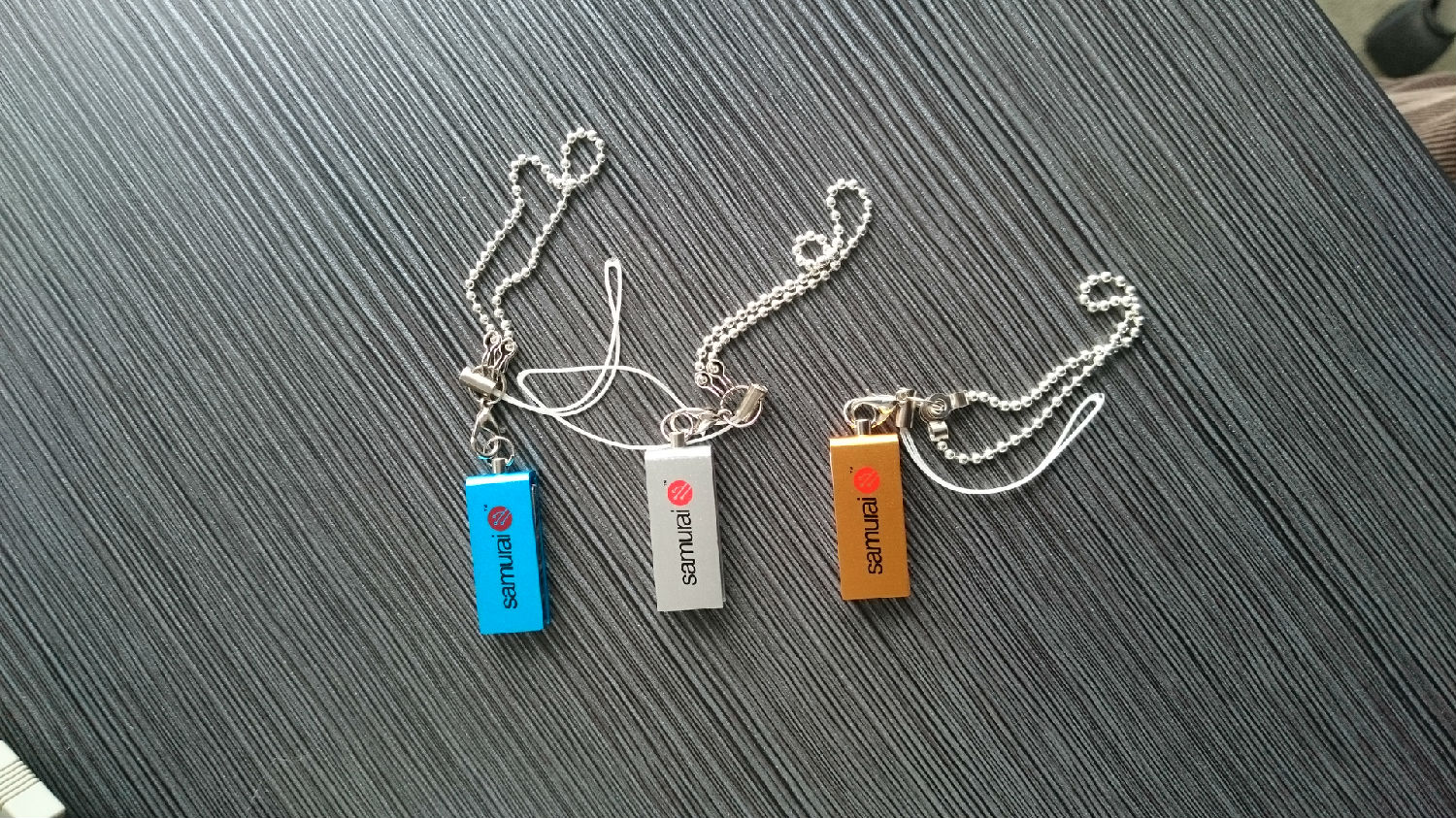 Small, easy to carry metallic USB flash drive with key holder. We have three colors in stock available for immediate delivery, other colors can be ordered as well. Brand name is Samurai but OEM and is also available on custom orders.