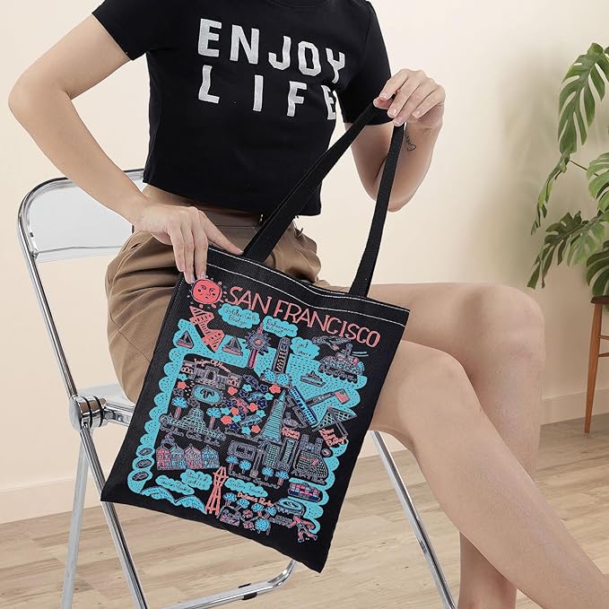 • 【MATERIAL】: The product is made of high quality cotton canvas, Soft and comfortable material. And this bag has neat overlocking and durable handles. Suitable size, convenient for both hand holding and shoulder toting.