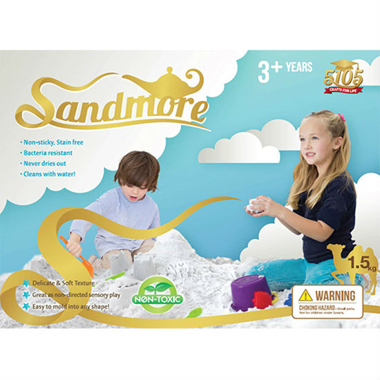 Pictured here is an innovative moldable sand toy for playing indoors. The sand is delicate and soft in texture for enjoyable sensory play. Kids can have endless fun creating their castles, sculptures, or other crafts.