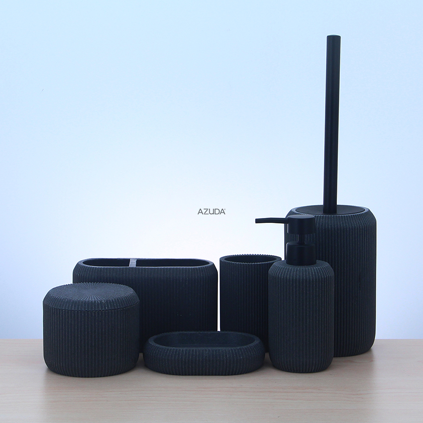 Sandstone Bathroom Accessories Set Stripe Design Grey Finish