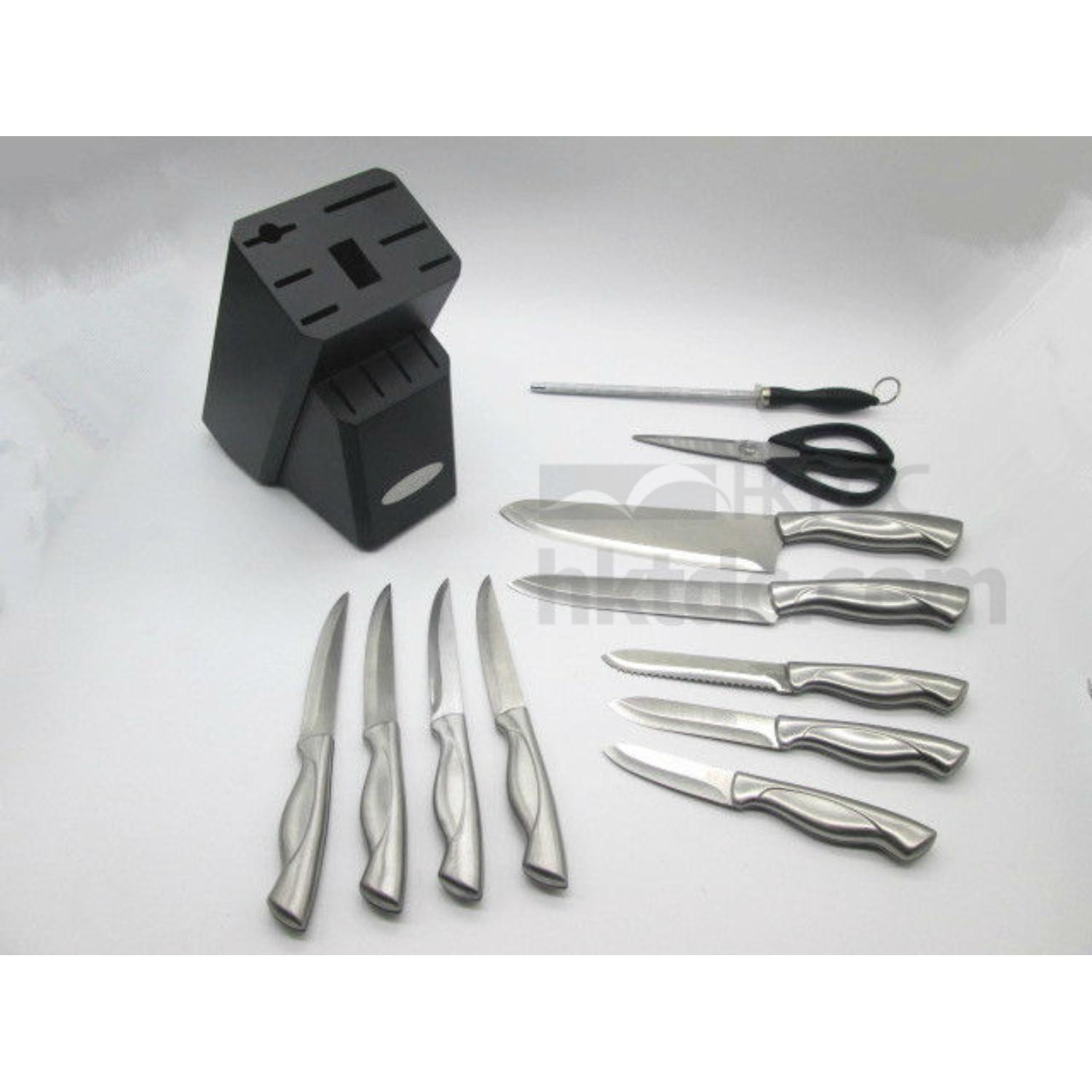 Include:8" Chef Knife(20cm)-2.0mm,7" Slicing Knife(18cm)-2.0mm,4.5"Utility Knife with serrated (11cm)-1.5mm,