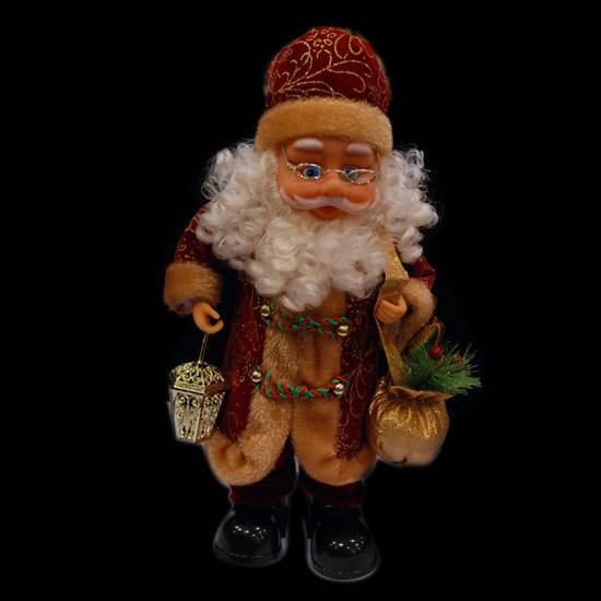 Featured here is a Santa Claus doll made of fabric and plastic materials. This item is equipped with sound and light effects, making it nice to look at. Your children will be delighted to receive this festive product.