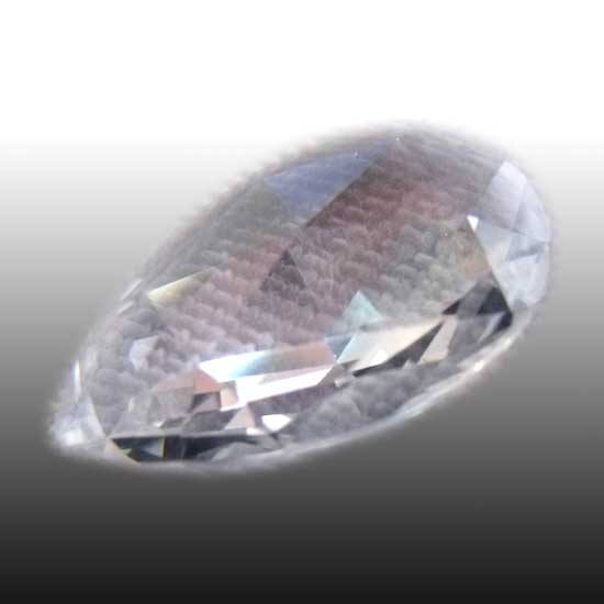 Featured here is a white sapphire stone with multiple facets. The dazzling shimmer of this white sapphire helps to indicate a sense of luxury. This decorative white sapphire is the perfect piece to finish a precious jewelry ring or necklace.