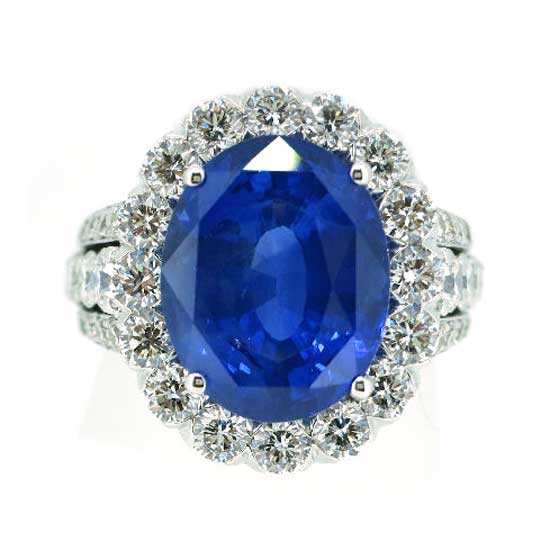 Displayed is an eye-catching ring coming with an oval faceted sapphire on the top. It is also accentuated with glistening diamonds around the sapphire and on the band. This stunning ring is a tasteful addition to your finger.