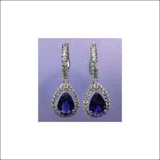 • A row of bead set round cut diamonds acts as the linkage with the drop sapphire