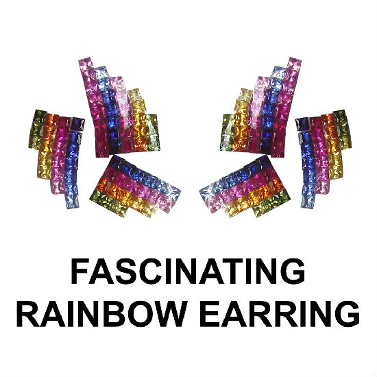 The studded earrings are delicately crafted with high-quality sapphire stones. The twinkling appearance catches all the attention, crowning you the fashion diva wherever you go. The admirable rainbow design shows off your cheerful personality without reservation. These dazzling sapphire earrings complete your glamorous look with irresistible beauty.