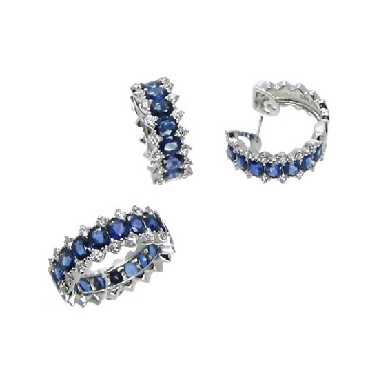 This jewelry set includes a ring and a finger ring. The items are fitted with finely cut and polished sapphires and diamonds. The unique set goes well with your elegant outfits.