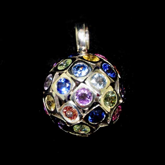 This enticing pendant flaunts a mini disco-ball like design. It is adorned with assorted well-cut sapphires for added brilliance. This sapphire pendant adds a pop of color to your everyday wear.