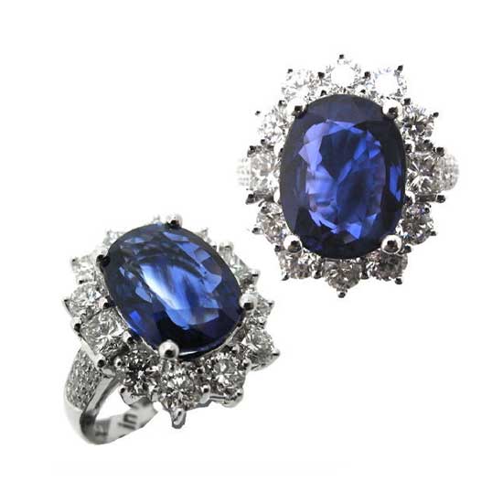 This sapphire ring comes with a graceful and stylish appearance. The oval sapphire in the center shows a charming blue color. It is surrounded by well-polished diamonds that sparkle under light.