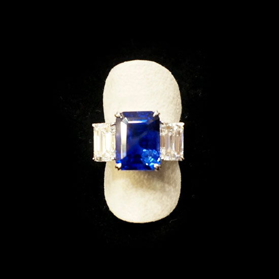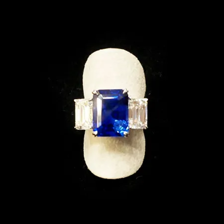 This sapphire ring boasts excellent color depth and superior scintillation. The deep blue sapphire is prong-set in platinum for a touch of gorgeousness. This excellent piece is perfect for formal evening gatherings.