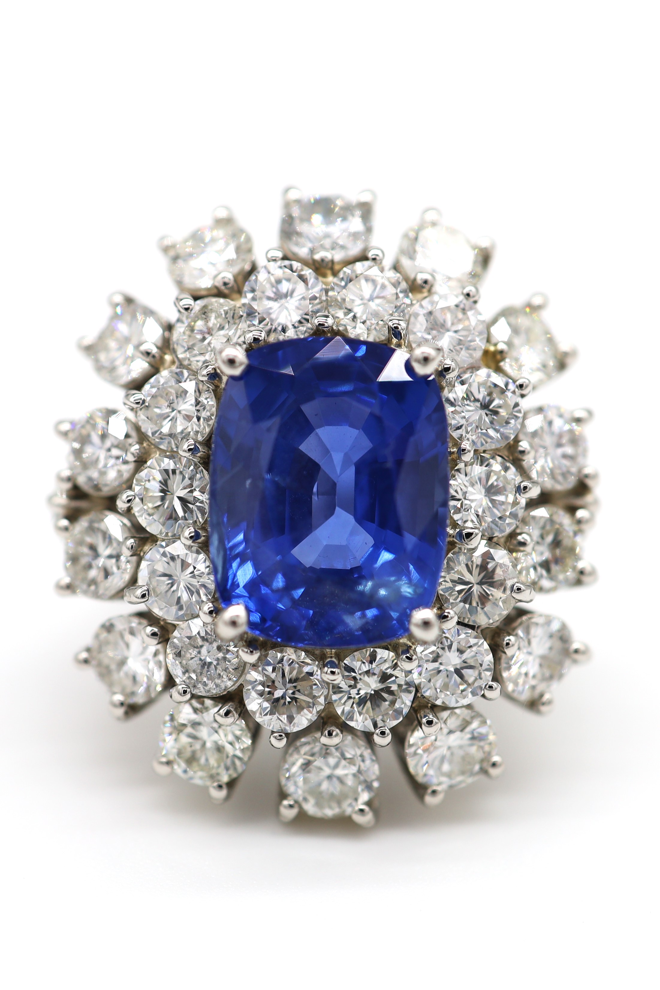 This exceptional ring features a rare 10.29 carat unheated Burma sapphire, certified by C. Dunaigre Switzerland, renowned for its prestigious gemological expertise. Set in luxurious PT900 platinum, the magnificent center stone is complemented by 7.72 carats of brilliant diamonds, enhancing its natural beauty and radiance. With a substantial total weight of 25.4 grams, this masterpiece embodies timeless elegance, rarity, and refined luxury.