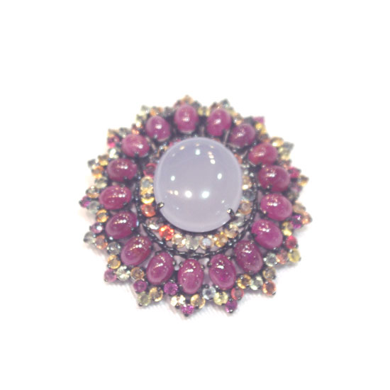 - Material: fancy sapphire, chalcedony and ruby.
