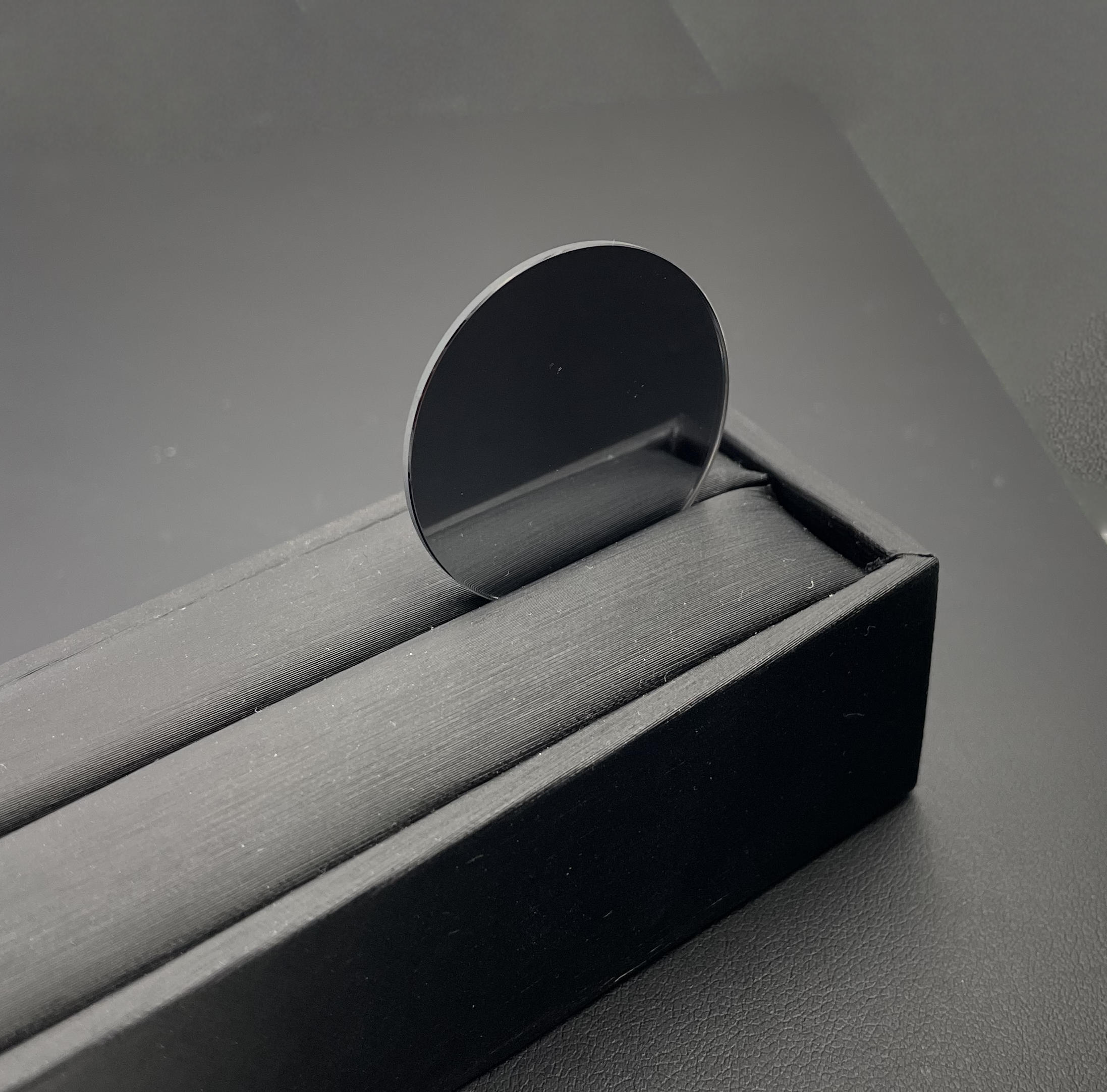 The featured mirror is made of sapphire crystal coloured with metallization. The sapphire has a hardness that ranks nine out of ten in the Mohs scale, making it the hardest material second to diamond. It is also designed to be anti-impact, anti-scratch, and with high electrical resistance.