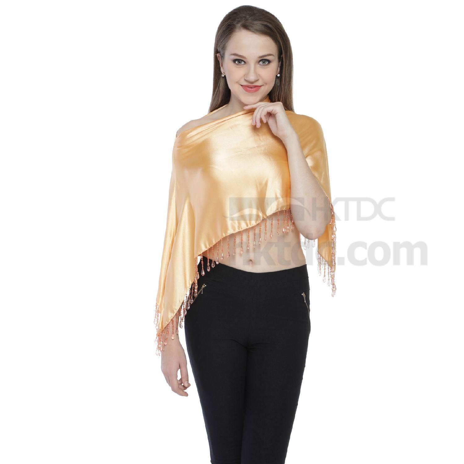 • Solid colour Triangle Scarf with heady beaded fringes